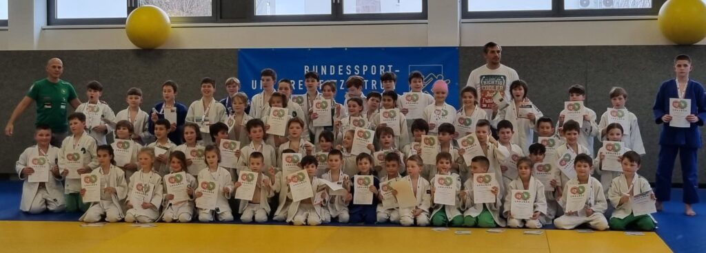 Sechszig Kinder zeigten im Sinn des Gedankens, sehr variantenreiches und mutiges Judo und durften sich mit dem ersten Puzzleteil belohnen!